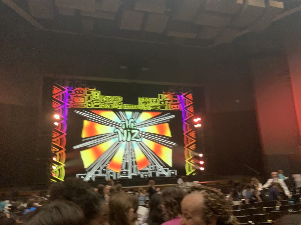 The moment we entered, I could feel “theater air.” The type of feeling you get when stepping into an exclusive, elegant museum. We went through security, and a great hall we approached. There was an area to take photos and buy merch. Everyone took pictures, and we walked into the massive theater, covered in elegant red, with The Wiz displayed on a set screen in the front. I sat with my group and ate lunch. After 30 minutes, we were signaled for all devices to be turned completely off.